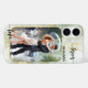 Boîtier téléphonique avec votre photo personnalisée sur un boho vert design abstrait chic boho en or vert avec des textes de script. Beau comme un cadeau pour une mariée ou un cadeau fiançailles.