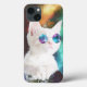 Coques iphone amoureux de les chats amusants avec des graphiques d'un chaton blanc, dans l'espace, portant des lunettes de galaxie plasma. Customisez d'ajouter votre propre texte.