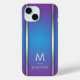 Un élégant étui téléphonique abstrait de style luxueux au design géométrique violet et bleu. Personnalisez avec votre monogramme et votre nom personnalisés.