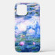 Un coque Monet rose nénuphar iPhone 12 avec de belles nénuphars roses flottant dans un étang bleu calme avec des nénuphars. Un grand cadeau Monet pour les amateurs d'impressionnisme et d'art français. Impressionnisme nature serein avec de belles fleurs et paysage d'étang pittoresque.