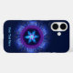 Étoiles fractales roses et bleues entrelacées de David sur un arrière - plan sombre. Customisez en ajoutant votre propre texte.