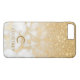 Protégez votre iphone avec ce marbre crème et or avec étui de téléphone à parties scintillant d'or. C'est une police dorée moderne avec votre première initiale et le nom ajoute la touche finale.