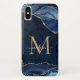 Glam Moderne Marine Bleu Parties scintillant or étincelant Agate Géode Élégant Feminine Monogramme Nom du script iPhone X Coque