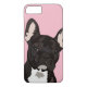 Un étui de téléphone en taureaux français de Pop Art avec un joli frenchie noir brindé sur un arrière - plan rose pastel qui peut être changé en n'importe quelle couleur.