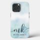 Arrière - plan en marbre bleu et menthe simulé avec monogramme personnalisé et nom.