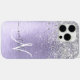Personnalisez facilement ce design branché de boîtier de téléphone chic avec une jolie parties scintillant brillante en argent sur un arrière - plan métallique brossé violet.