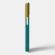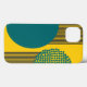 Ce boîtier téléphonique a un design moderne du milieu du siècle de cercles avec des lignes qui sortent d'eux en turquoise et noir sur un champ d'or.