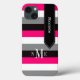 Ce Coque personnalisé noir, blanc, chaud rose fuchsia et gris -Mate à peine There iPad mini coque d'affichage Retina a un large motif arrière - plan rayé et un ruban bannière noir avec couture blanche à ajouter votre nom, initiales, monogramme ou autre texte à. Ce nouveau coque moderne et branché fait une déclaration chic pour le jeune fashionista branché ! Si vous avez besoin d'aide, envoyez un courriel à niteowlstudio@gmail.com.