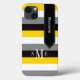 Ce Coque personnalisé noir, blanc, gris et jaune à peine Il iPad mini coque d'affichage Retina a un large motif arrière - plan rayé gras et un ruban de bannière noire avec couture blanche à laquelle vous pouvez ajouter votre nom, initiales, monogramme ou autre texte. Ce nouveau coque moderne et branché fait une déclaration chic pour le jeune fashionista branché ! Si vous avez besoin d'aide, envoyez un courriel à niteowlstudio@gmail.com.