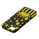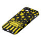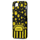 Le jaune minuscule frais a coloré la conception heureuse de motif de visage de point de polka sur le noir. Le rétro ruban de monogramme de fleur de rayure, personnalisent avec votre nom