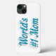 Phone case with World's #1 Mom in 3D sky blue text. Available for several phone styles.