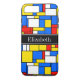 Coques Case-Mate iPhone Mondrik Style Rouge Bleu Jaune Noir Nom Monogramme