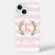 Ce design branché et amusant est orné d'un arrière - plan rayé rose et blanc avec une couronne fleurie colorée. Personnalisez le design avec votre nom et monogramme ou autre texte. Utilisez les outils de conception pour choisir une couleur arrière - plan, modifier les polices de texte et les couleurs ou télécharger vos propres photos pour créer un boîtier téléphonique monogrammé unique.