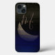 nom personnalisé et initiale monogrammed sur iPhone 13 Coque avec lune dorée chic et parties scintillant or abstrait.