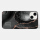 Ce joli boîtier de téléphone présente un design abstrait dramatique en parties scintillant d'or noir et rose. Le confetti étoilé minuscule donne un effet de scintillement, avec votre monogramme en gris pâle contre gris foncé et noir au fond. Classique !