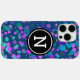 Coques Case-Mate iPhone Monogramme bleu brillant confetti pourpre points s