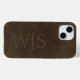 Cuir vintage (IMPRIMÉ, PAS VRAI TEXTURE) brun foncé masculin élégant coque iphone avec 3 lettres monogramme personnalisé.
