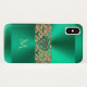 Caisse celtique verte de l'iPhone X de monogramme de noeud de coeur de Kelly d'Irlandais. Vert métallique moderne avec des symboles mystiques celtiques antiques comprenant un noeud celtique vert de coeur et une chaîne des noeuds sans fin celtiques. Complétez votre initiale à l'invite pour personnaliser et customiser si désiré. Les noeuds celtiques sont une forme d'art celtique traditionnelle, notamment caractérisée en n'ayant aucun début et aucune fin, qui symbolisent l'amour éternel et le cycle interminable de la vie. Ils sont devenus un symbole préféré dans beaucoup de cultures et de civilisations autour du monde et avec beaucoup de praticiens de magie ou mysticisme aujourd'hui. Le noeud celtique de coeur est un noeud sans fin sous forme de coeur et représente l'amour romantique éternel et sans fin.