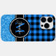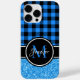 Design monogrammé personnalisable noir, blanc et bleu. En haut se trouve un en vichy de bûcheron noir personnalisable ou un motif de style plaid à buffle. En bas, une photo de parties scintillant bleu ciel ou aqua. Le design est une photo, donc fausse texture de parties scintillant. Créez votre propre coque monogramme personnalisé. Essayez une police ou une couleur différente dans le système pour convenir à votre style personnel. Si vous voulez centrer le mandala monogramme, nous vous suggérons de sélectionner tous les éléments de conception et de les déplacer ensemble.