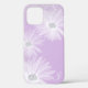 Le design présente des fleurs blanches délicates avec des pétales de ruban et un centre de parties scintillant, sur un arrière - plan violet légèrement parsemé d'une touche de poussière argentée fine. Personnalisez avec votre initiale.