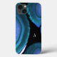 Élégant et oculaire étui de téléphone dispose d'une image vibrante de géode agate tranches dans les tons lumineux de turquoise, bleu et violet sur un riche arrière - plan noir. Personnalisez avec vos initiales ou monogrammes cachés dans le design en lettres blanches classiques.