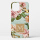 "Vintage Girly Flowers Gold Parties scintillant Mint Monogramme iPhone 12 Coque." vintage florale classique et élégante avec un cadre de parties scintillant en or filé arrière - plan pour votre initiale monogrammée a été créée par Audrey Jeanne Roberts, artiste de renommée internationale, à partir d’éléments floraux vintages et d’un arrière - plan à texture de menthe molle en bois d’aqua blu avec des oiseaux chanteurs.Droit d'auteur .