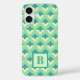 Coques Case-Mate iPhone Monogramme de Motif géométrique turquoise et vert