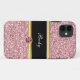 coque iphone monogramme de bijoux avec un joli arrière - plan de parties scintillant rose et des accents d'or et de pierres de diamant roses imprimés, tous numériquement imprimés comme des oeuvres d'art pour imiter le vrai. Personnalisez le monogramme avec n'importe quel nom ou initiales. Protège votre téléphone portable avec style et dispose d'ouvertures pour tous vos ports et boutons. Conçu pour les femmes ou les filles qui aiment les bijoux en diamant et les designs clinquants.