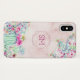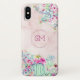 Ce coque iphone de cactus présente un modèle de cactus aquarelle et succulents avec un monogramme à l'intérieur d'une fausse feuille d'or rose forme géométrique avec arrière - plan en marbre rose vif. Personnalisez-le avec vos propres initiales.