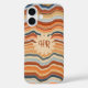 Coques Case-Mate iPhone Monogramme Initiales Bandes Rétro Vagues Bleu Oran