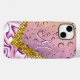 Élégant Monogram M Parties scintillant Or Imaginaire rose Pluie Droplets Coque-Mate iPhone 14 Coque.