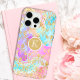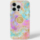 Monogramme Moderne Parties scintillant Abstraite Personnalisée iPhone 15 Pro Max Téléphone boîtier Coque dispose d'un arrière - plan d'art liquide abstrait coloré en rose, violet, rouge et bleu avec un motif de fleurs d'or et accentué avec parties scintillant faux or et personnalisée avec votre monogramme personnalisé au centre. Un cadeau parfait pour elle pour Noël, anniversaire, Fête des Mères et bien plus que petite amie, soeur, mère, amis. Créé par Evco Studio www.zazzle.com/store/evcostudio