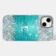 Coques Case-Mate iPhone Monogramme moderne Turquoise Holographique Faux Pa