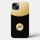 Étui smartphone professionnel pour homme avec un fond métallisé doré imprimé et un emblème de monogramme pour votre nom ou vos initiales de monogramme. Protège votre téléphone avec style, approprié pour une utilisation professionnelle ou personnelle.