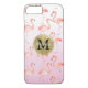 Les oiseaux tropicaux monogramme et nom girly d'été de Flamants roses d'ombre rose d'aquarelle ont personnalisé le coque iphone