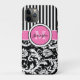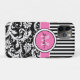 Coques Case-Mate iPhone Monogramme rose, noir, blanc rayé Damas