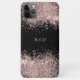 Monogram Pink Glam iPhone 11 Pro Max Coque conçu sur un arrière - plan noir avec Pink-Rose couleur faux éperon pour un look élégant. Pour personnaliser, il vous suffit d'insérer vos initiales dans notre modèle facile en remplaçant l'exemple de texte. Fait un grand cadeau. Bon appétit !