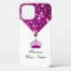 Royal Monogram iPhone 12 coques avec pierre de taille brillante imprimé sur le coque, une couronne de monarchie reine, et simulé espace monogramme de parties scintillant violet pour ajouter votre nom ou des initiales monogrammes. Conçu pour les femmes ou les femmes qui rêvent d'être pourcentages.