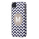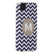 Coques Case-Mate iPhone Motif blanc de Chevron de monogramme de bleu