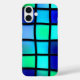 Ce boîtier téléphonique a un motif carré bleu représenté dessus.