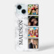 Créez votre propre étui de 4 photo-collage personnalisé avec vos images personnalisées et votre nom sur un élégant arrière - plan en marbre blanc élégant.