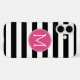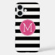 Coques Case-Mate iPhone Motif noir blanc rayé rose chaud Monogramme