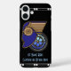 Contre un arrière - plan noir brillant, le trompe l'oeill humoristique qui orne cette couverture de coque iPhone 16 vous mènera à vous demander si l'image bleu et or royal est l'avant d'une voiture de tourisme classique - ou un profil du dieu Mercury chevauchant un pneu à roues fantaisie ? Avec 2 champs personnalisés pour le nom, etc., la peinture numérique originale d'IconDoIt a été, inspirée par l'une des grandes affiches de rallye automobile des années 1930 Vintages.