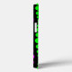 Ce boîtier de téléphone a un design moderne du milieu du siècle de rectangles ronds rose, vert et bleu néon dans une taille croissante et décroissante fonctionnant verticalement sur un champ de noir.
