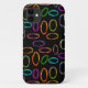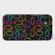 Ce boîtier téléphonique a un design géométrique de groupes de trois ovales en néon, éparpillés sur un champ de noir.