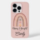 Coque iphone de Noël en rose boho et arc-en-ciel, élégamment décoré avec votre prénom de script.