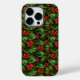 Christmas Holly Feuilles Et Red Berries Seamless Motif Coque-Mate iPhone 14 Pro Coque. Un motif sans couture de Noël avec des feuilles verts et des baies rouges sur un arrière - plan noir.