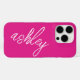 Ajoutez une touche unique à votre téléphone avec ce boîtier de téléphone portable rose chaud élégant et élégant. Ce design moderne et sophistiqué comprend votre propre nom personnel écrit gracieusement en blanc. L'arrière - plan rose chaud offre un cadre chic tandis que le script blanc ajoute une touche d'élégance. Ce coque monogrammé personnalisé est la meilleure façon de montrer votre style individuel.