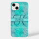 Coques Case-Mate iPhone Nom du monogramme Sirène initiale bleu pourpre ver