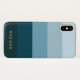 Personnalisez cette caisse de téléphone pour vous-même ou quelqu'un spéciaux ! Rayures larges dans nuances apaisantes de palette de couleurs bleue avec le nom d'or au fond.